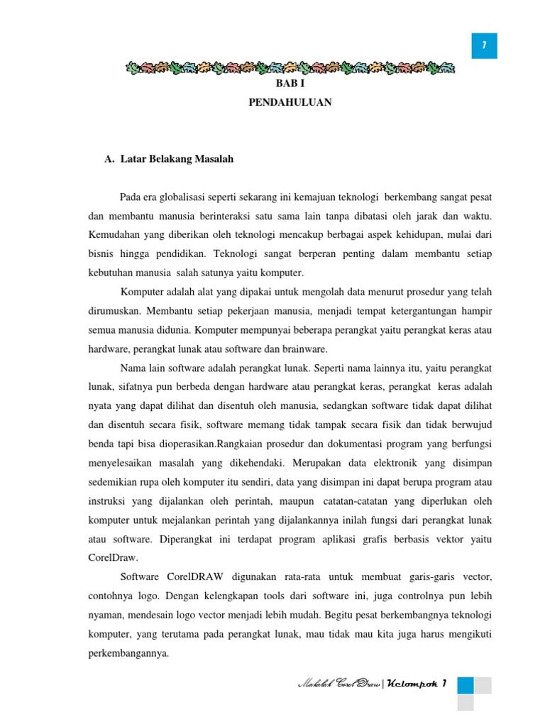 Contoh Desain Cover Makalah Tugas Akhir Keren Terbaru ... from 3.bp.blogspot.com Untuk mengetahui pengertian dari corel draw untuk mengetahui tata cara penggunaan corel draw untuk mengetahui pengertian photoshope untuk mengetahui tata cara penggunaan. Corel draw pada awalnya dikembangkan untuk dijalankan pada sistem operasi windows 2000 dan yang lebih baru. Keuntungan dari vektor ini adalah gambar akan mempunyai ukuran kapasitas file yang relatif kecil apabila dibandingkan dengan pengolah grafis berbasis bitmap. Makalah corel draw senin, 11 januari 2016. Apakah pengertian dari coreldraw ? Corel draw tentunya sudah tidak asing ditelinga kita saat ini, corel draw adalah software aplikasi pengolah gambar vektor bisa dibilang. Makalah corel draw | kelompok. There was a problem previewing makalah corel draw x5.pdf.